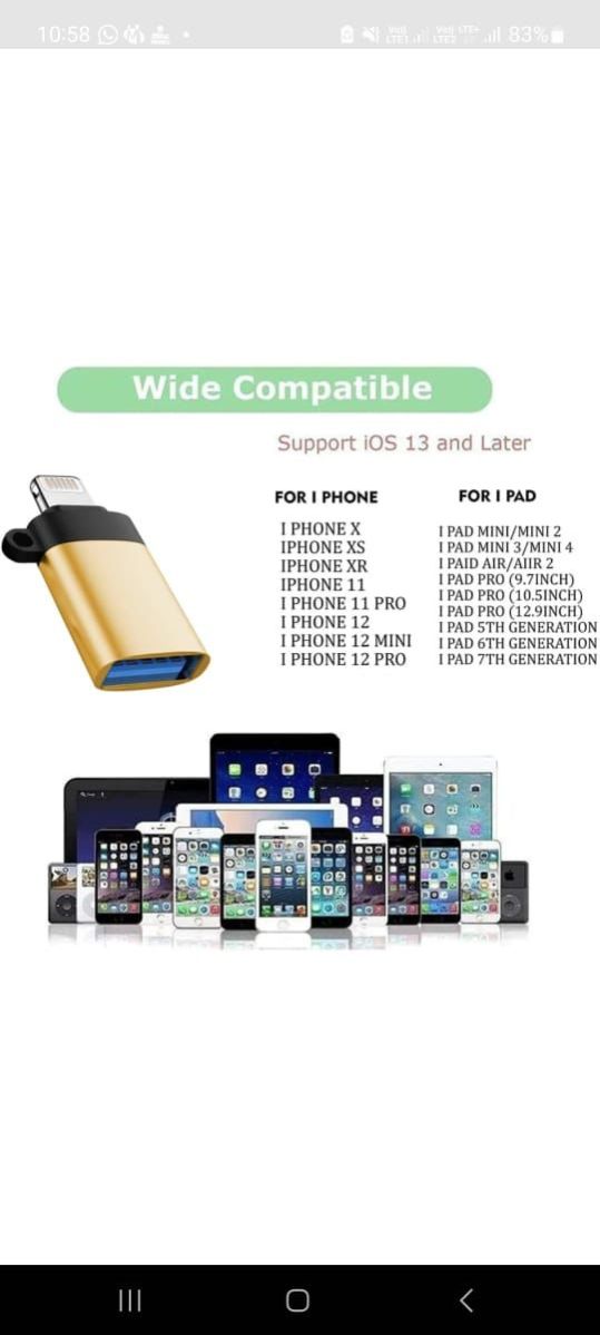 The iPhone OTG (On-The-Go) is a versatile and compact accessory designed to enable USB On-The-Go functionality for iPhones. This adapter allows you to connect USB peripherals such as flash drives, keyboards, or cameras directly to your iPhone, expanding its functionality. With a sleek and portable design, the iPhone OTG provides convenient connectivity for a variety of USB accessories, offering a seamless solution for data transfer and device expansion. Whether you want to quickly transfer files or connect external devices to your iPhone, this OTG adapter enhances the capabilities of your Apple device in a compact and user-friendly form.