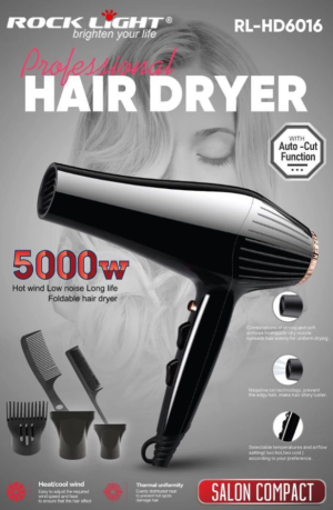 Upgrade your hair care regimen with the Rock Light RL-HD6017 Hair Dryer, where efficiency meets style, delivering a reliable solution for achieving salon-worthy results effortlessly.
