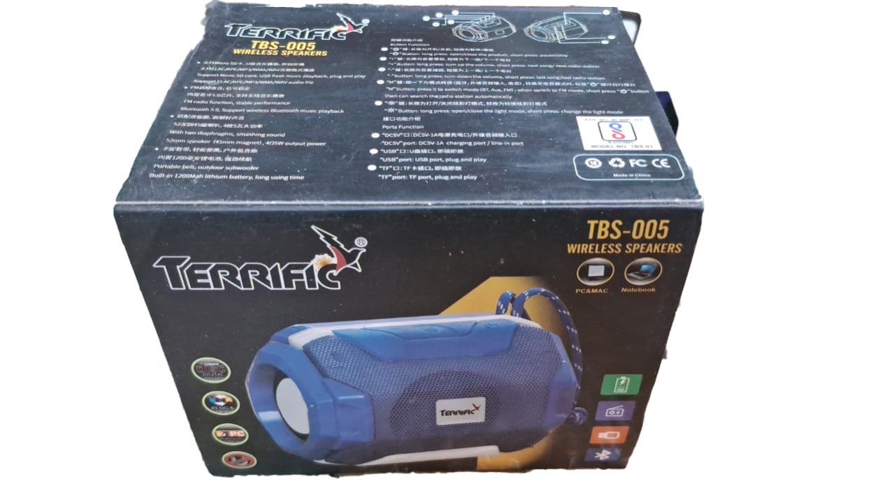 The Terrific TBS-005 Bluetooth Speaker is a portable audio solution that combines style with performance. With Bluetooth connectivity, this speaker easily pairs with your devices, offering a wireless and convenient audio experience. Despite its compact design, the TBS-005 delivers clear and dynamic sound, enhancing your music enjoyment on the go. The sleek and modern aesthetic adds a touch of sophistication to any setting, making it versatile for various occasions. The built-in rechargeable battery ensures extended playtime, allowing you to enjoy your favorite tunes for longer periods. The Terrific TBS-005 Bluetooth Speaker is an ideal choice for those who value both portability and audio excellence in their audio accessories.
